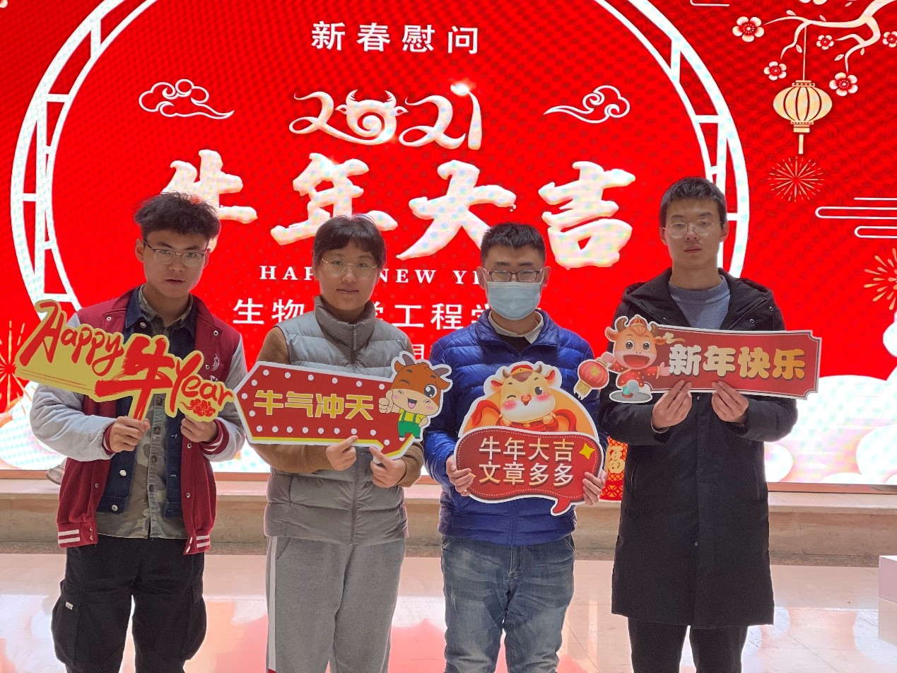 学院思政教师孟祥琦、谢蒙蒙和虞凌霄向同学们派发大礼包,并关心同学们的生活状态、科研进展,嘱咐大家加强个人防护、注意安全,同时预祝大家在学校过一个安心、开心年。同学们收到学院关怀感到非常温暖,表示留校过年不孤单。