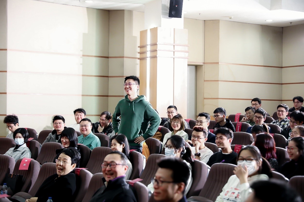 现场互动环节中,同学们将会前收集到的问题总结成“初心、Yesterday Once More、抉择、憧憬”等关键词,请成学长与现场观众们分享。学长与在场的师生校友们风趣互动、诚挚交流、细致讲述一路走来在学习、事业、生活等方面的经验和心得。谈及当今生医工领域的发展,成学长希望能在国内外大环境中坚守初心、坚定信念,在挑战中发现机遇,在学习中不断实现自我超越;当分享到工作感受时,他用脚踏实地的自身经历诠释了“学无止境”带来的无限可能,成学长用一个个成长故事深刻鼓舞了生医工的学弟学妹们。
