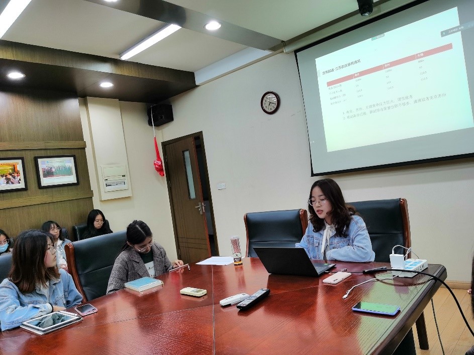 冯丹妮学姐为大家分享了考取选调生的经验,她从选调生分类,报名条件,职位计划,录用规则四个方面为大家详细解读了选调生考试的政策,并告诉大家,选调生考试战线长,任务重,大家一定要合理规划好时间,尽早开始准备。张健源学长补充道,大家可以利用暑期到政府部门实习,明确自己是否喜欢且适合政府部门的工作,想清楚以后再做决定。