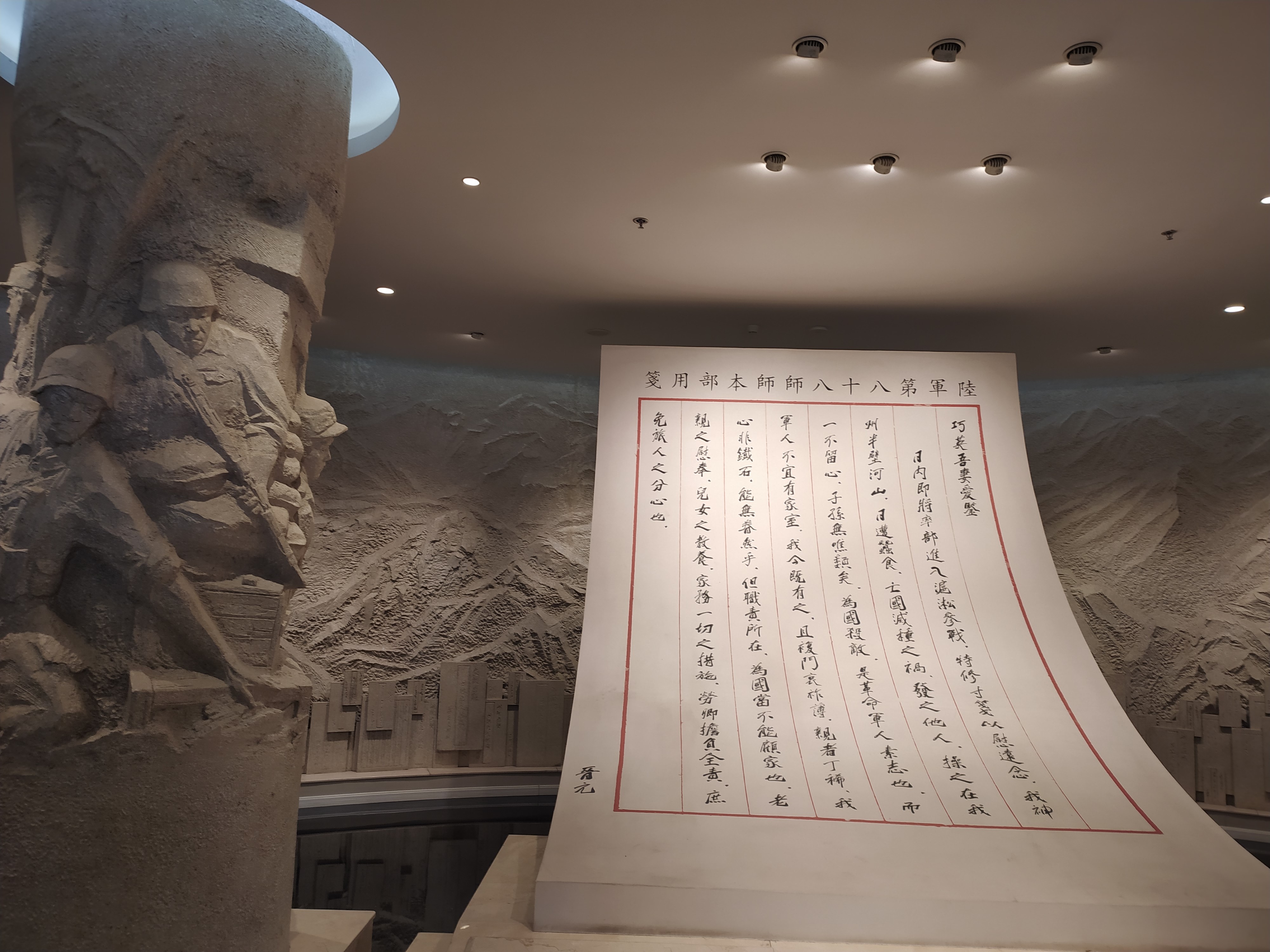 进入馆内,首先映入眼帘的是一封“八百壮士”副团长谢晋元在赴淞沪战场前写给妻子凌维诚的家书,字里行间都是忧国之思和舍小为大的情怀,展现出对抗战必胜的坚定决心。