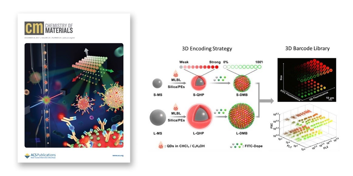 近日,国际著名学术期刊《材料化学》(Chemistry of Materials, IF=9.5)以封面文章在线刊登了beat365中文登录入口古宏晨和徐宏团队在体外诊断多指标检测领域的最新研究成果。这是该团队继Chemical Communications、Advanced Functional Materials等成果后在新型悬浮芯片技术领域又一创新性突破。上海交大是本文的第一作者及通讯作者单位。