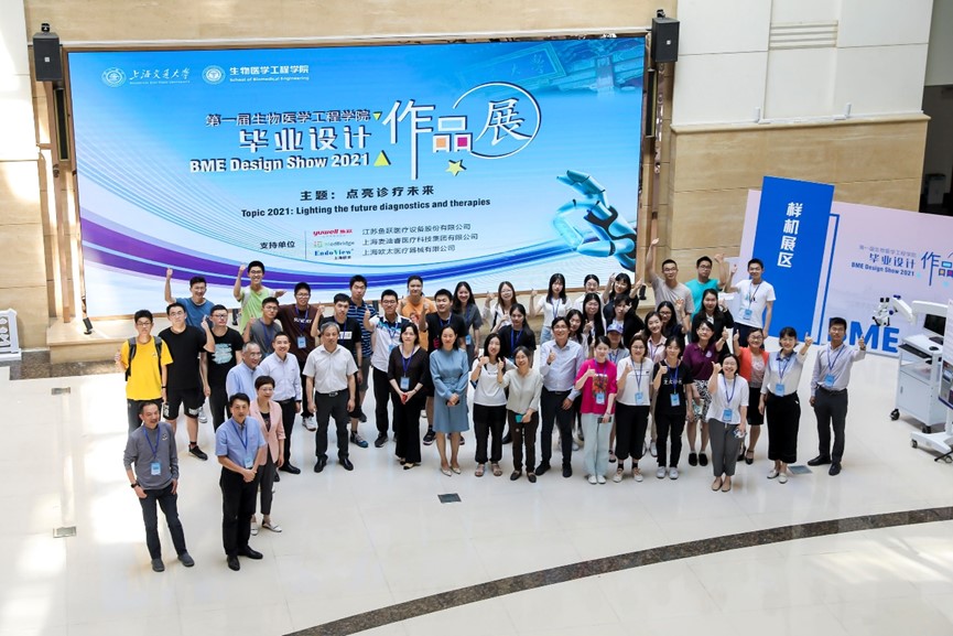 2021年6月5日,第一届beat365中文登录入口本科生毕业设计作品展在闵行校区文选医学大楼顺利举办。本次活动以“点亮诊疗未来”为主题,邀请了上海理工大学医疗器械与食品学院院长刘宝林、上海市医疗器械检验研究院副院长郁红漪、beat365中文登录入口转化医学研究院副院长孙洁林、beat365中文登录入口学生创新中心副主任仝月荣、beat365中文登录入口医学院附属第九人民医院眼科葛盛芳教授、beat365中文登录入口医学院附属仁济医院麻醉科周洁副教授、鱼跃医疗董事王丽华、鱼跃医疗战略部总经理郑洪喆、麦迪睿医疗副总裁施荣华、欧太医疗顾问徐国伟等来自临床一线、学术前沿、医疗产业的专家、学者作为评审。同时出席本次作品展的还有学院党委书记季波、常务副院长金学军、副院长白景峰、党委副书记孟祥琦、教学与人才培养委员会主任童善保。