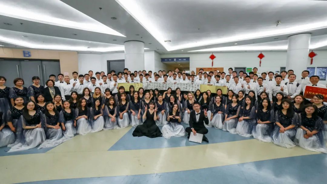 台上一分钟,台下十年功。金奖第一名的获得实属不易。为了更加出色的表现,合唱团四院多次进行联合排练,勤奋练习。声带喉头控制练习、横膈肌唱歌练习、气息控制与音阶练习……每位同学积极排练,互相帮助。同时,老师们尽心尽力,点对点地指导每一位同学,逐个纠正咬字与发声方法。在老师们精益求精的指导下,同学们唱出了歌曲中细腻丰富的情感,流露出从家到国的真情。合唱排练冲刺阶段,领导们的亲切慰问让联队师生充满信心,最终以意气昂扬的精神风貌为歌会添上了灿烂的一笔。感谢老师们的耐心指导,感谢同学们的认真投入,感谢后勤工作者的默默付出… …荣誉属于每一位参与者!