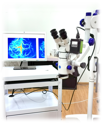 童善保和苗鹏团队研制了高分辨率激光散斑衬比成像技术,在手术显微镜设备上实现近红外相干光血流灌注成像和多波长重建血氧代谢成像功能。血管成像过程中不需要使用造影剂,具有高分辨率、大视野测量和实时高清显示的技术优势,解决了传统外科手术显微镜只能提供形态学观测,无法提供血流灌注和血氧代谢信息的瓶颈问题。已自主研发了具备无造影剂血流成像功能的神经外科手术显微镜,合作研发了具备ICG荧光和激光散斑成像的多模态腹腔镜产品。