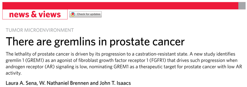 5 Sena, L. A., Brennen, W.N. & Isaacs, J.T. . There are gremlins in prostate cancer. Nat Cancer 3, 530–531, doi:https://doi.org/10.1038/s43018-022-00381-2 (2022).