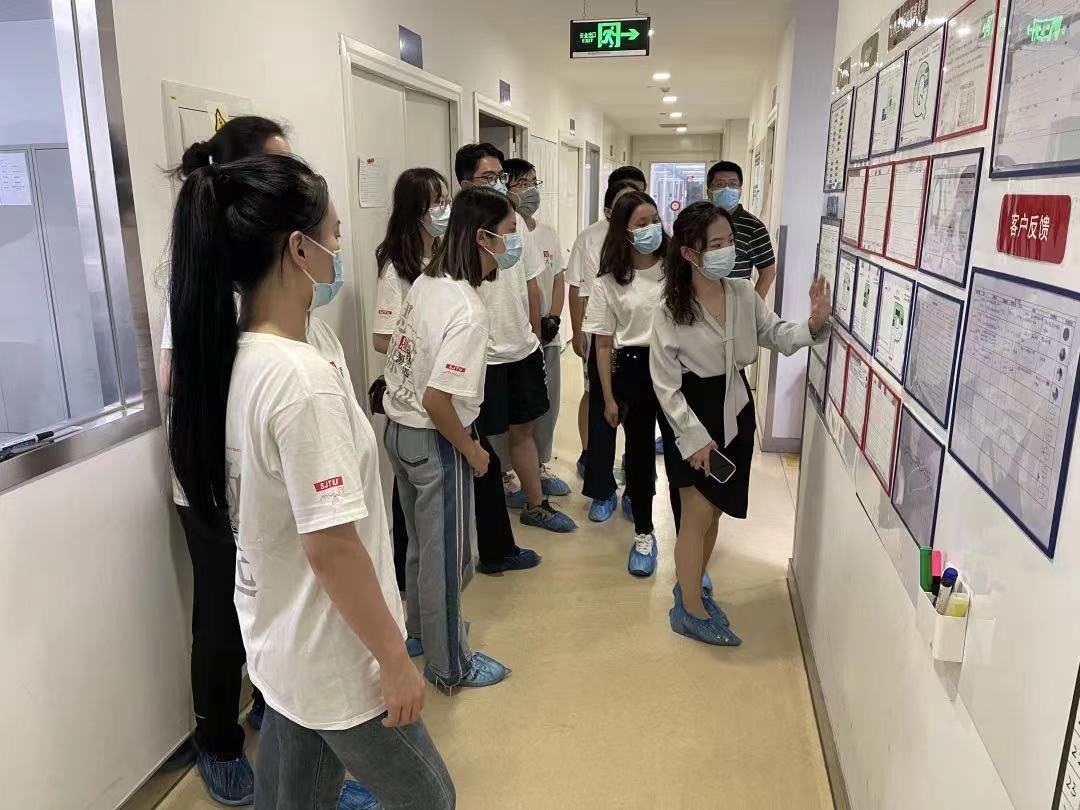 8月16日下午,生医工师生前往上海漕河泾开发区。首先参观了艾瑞德生物科技有限公司的生产产线。生医工2016级校友、研发总监王佩瑞向实践团师生进行讲解介绍。