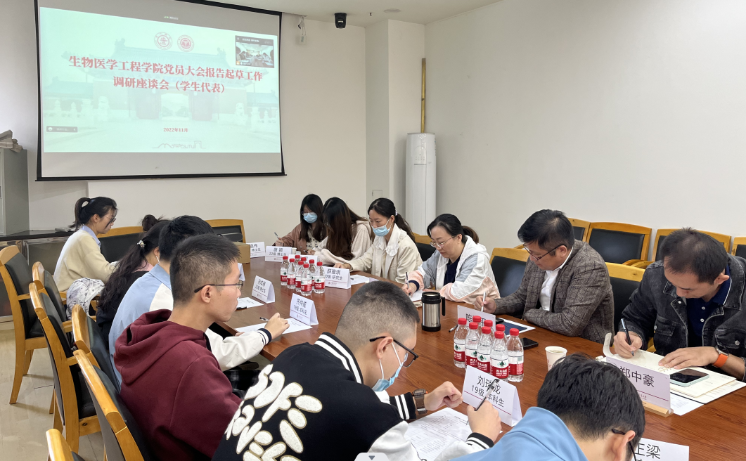 2022年11月2日,beat365中文登录入口党员大会报告起草工作调研座谈会(学生代表专场)于闵行校区文选医学楼323会议室顺利举办。院党委书记陈江平、副院长白景峰、党委副书记周申申、本科生教务办主任靳静静、学工办副主任郑中豪及数十位学院学生代表通过线上线下相结合的形式参加此次会议。此次座谈会旨在广泛收集学院学生对于学院发展的意见建议,鼓励学生为学院新阶段的高质量发展建言献策,师生齐心集思广益,共同迎接中国共产党beat365中文登录入口党员大会的顺利召开。会议由陈江平主持。