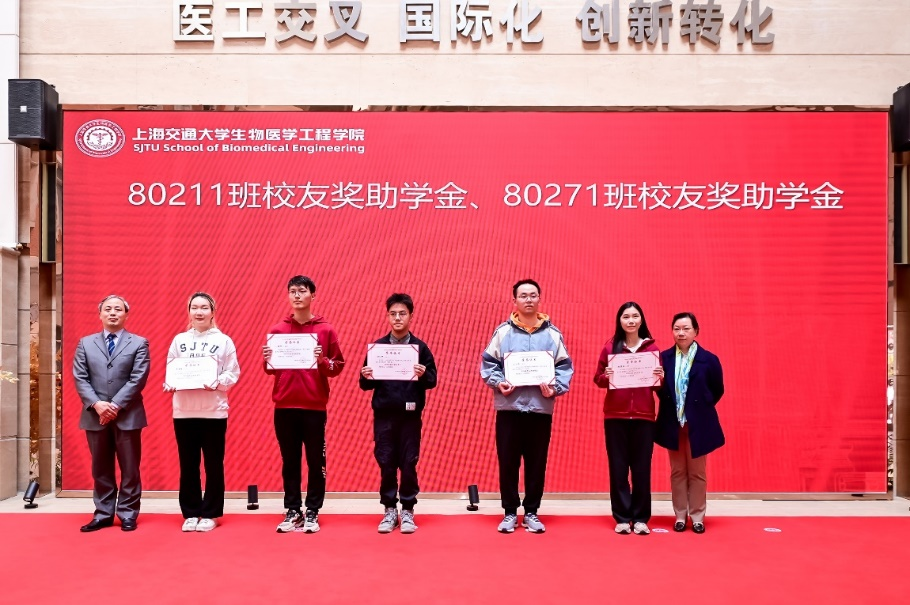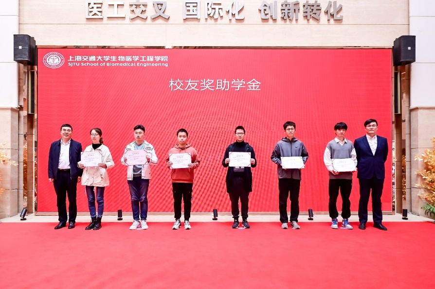 历届生医工校友同样心系母院发展,设立了多项奖学金、奖教金,勉励学弟学妹潜心科研、主动创新,激励学院教师践行立德树人使命,携手助力学院人才培养工作蓬勃发展。学院副院长白景峰、孙建奇为“校友奖助学金”的获奖学生颁发证书。梁培基学长、金学军老师为“80211班校友奖助学金”、“80271班校友奖助学金”的获奖学生颁发证书。杨大宁学长为获得“朗迈医疗奖学金”的获奖学生颁发证书。孟竹学长、祖辉先生为获得 “普瑞纯证奖学金”、“艾瑞德奖学金”的获奖学生颁发证书。80103全体校友代表为“80103班奖教金”、“班主任刘国亭奖教金”为获奖教师颁发证书。陈江平、金学军为“姚佳优秀教师奖励基金”的获奖教师颁发证书。