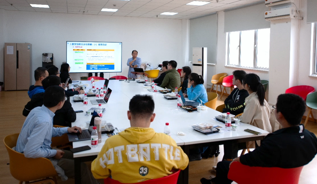 在随后的交流环节中,与会教师和助教与童老师进行了深入的交流和探讨,他们基于所授课程的教学改革创新出发,将教学改革创新的做法,以及参赛过程中可能遇到的问题与困难和童老师展开具体的交流和讨论。童老师结合自身教学创新经验和感悟,以及教学创新大赛过程中遇到的问题以及相关解决方案,为与会教师提供了很多教学创新改革的启发。