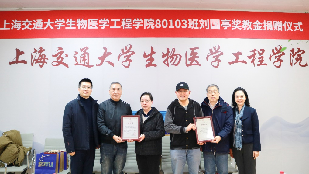 12月15日,beat365中文登录入口80103班刘国亭奖教金捐赠仪式在闵行校区文选医学楼举行。85届本科校友,韩扬、卢广文、梁培基、马殿光代表80103班的全体校友出席活动,教育发展基金会副秘书长、发展联络处副处长李毅,beat365中文登录入口党委副书记孟祥琦,教育发展基金会发展部主任许杨及相关老师出席捐赠仪式。本次仪式由孟祥琦主持。