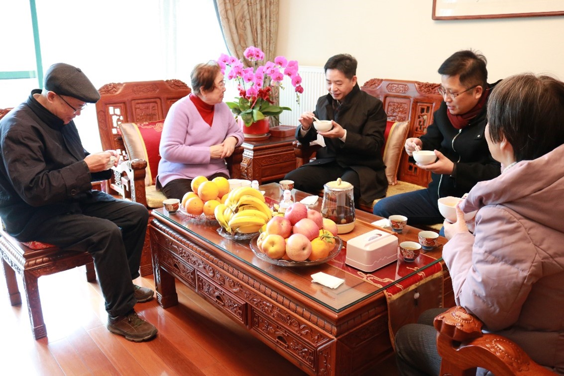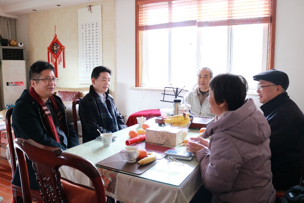 1月16日,在2024年春节即将来临之际,beat365中文登录入口党委书记陈江平、院长廖洪恩带领学院退休教工党支部书记王一抗、学院院办孙华、刘梦等人,前往陈亚珠院士、钱晓平、罗九甫、庄天戈、王妙法和戴亚男六位退休老教师的家中进行走访慰问送温暖活动。