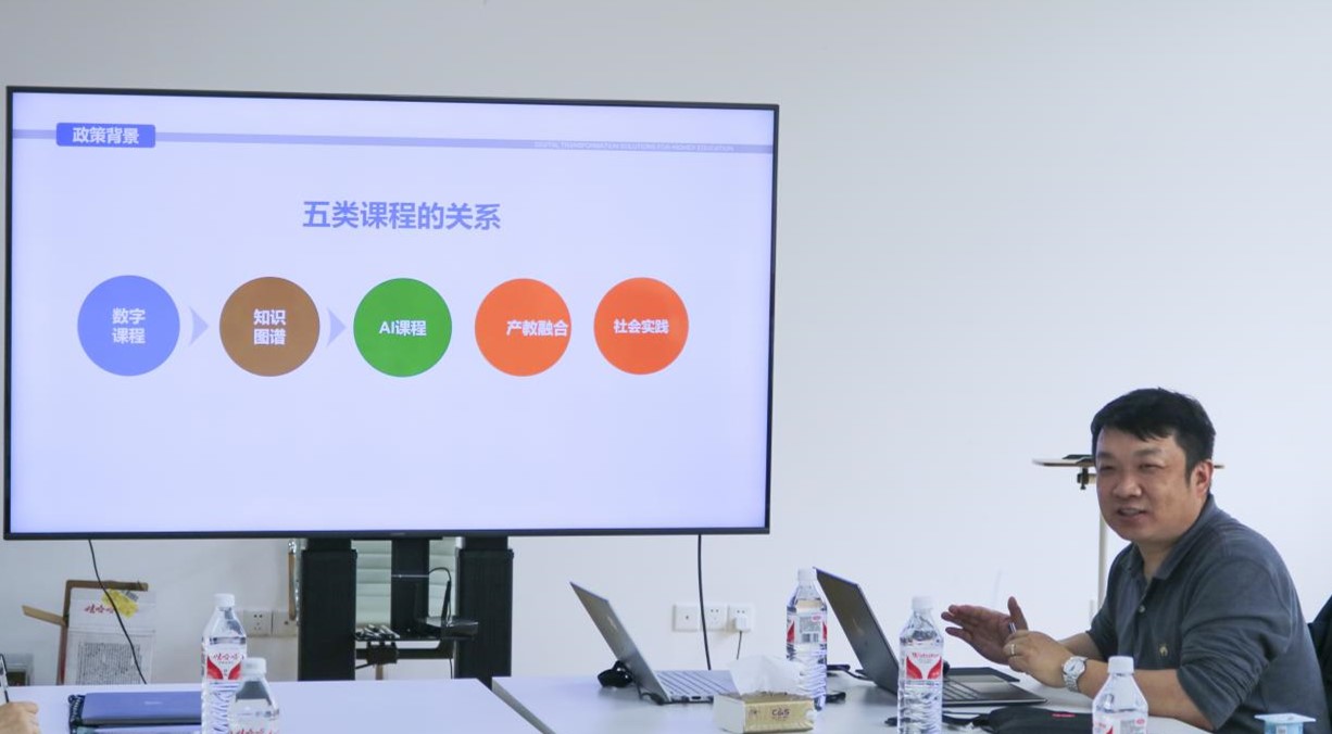 学院教学与人才培养委员会主任童善保教授对余老师的到来表示欢迎,感谢余老师对学院教学发展的长期帮助和指导。余建波老师回顾了自2018年以来教育部发布的《教育信息化2.0行动计划》以及《中国教育现代化2035》等重要文件,从数字课程、知识图谱、AI课程、产教融合、社会实践五个方面,从实际案例出发,详细阐述了AI赋能课程改革的详细情况。