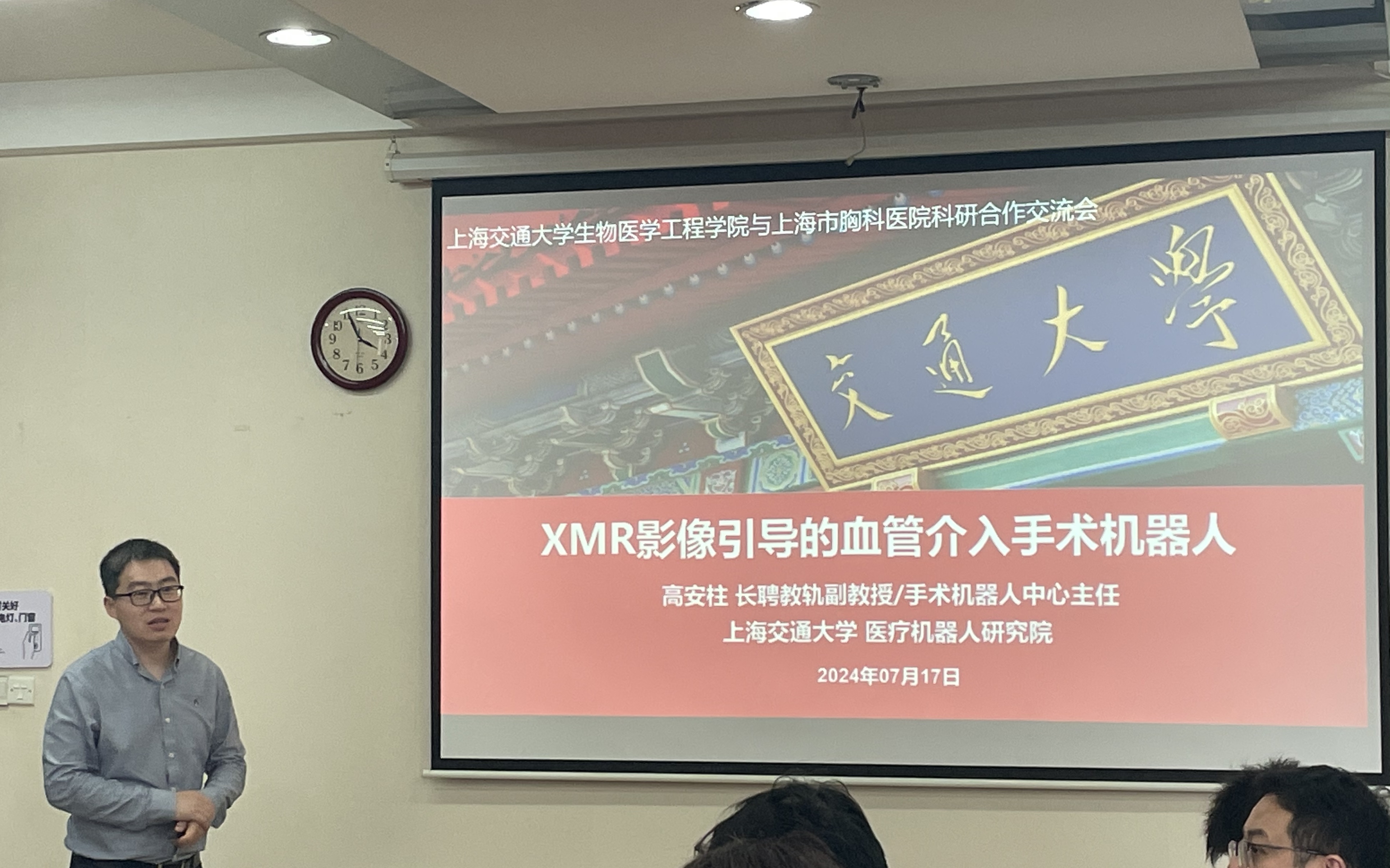 随后,双方团队围绕胸科疾病的临床需求和诊治技术进行报告分享。麻醉科吴镜湘主任介绍了胸科麻醉评估过程中医疗大数据的应用前景,希望在多模态血压监测预警、床旁自动化诊断、临床事件知识图谱开发等方面开展医工合作。心外科戴黄栋医生以心力衰竭患者的远程监控为例,分享了远程医疗对慢性病患者健康监护的重要意义,希望在数据捕获整合与识别分析方面深入交流。韩文正副主任讲述了肾动脉周围神经消融术的即刻评估需求与研究瓶颈,期待与学院老师的进一步合作。放疗科张琴副主任讨论了当前胸部肿瘤放疗技术存在的关键问题,并基于已开展的医工交叉研究展望了由人工智能引导、数据驱动、生物学信息赋能的新一代胸部肿瘤精准放疗技术。作为回应,生医工学院参会教师逐一分享了团队在心血管疾病影像评估、成像分析、分子影像探针、肿瘤精准诊疗、医疗机器人等领域的研究进展。孙建奇副院长向参会人员介绍了beat365中文登录入口的医工交叉特色与Med-X创新转化成果。现场讨论氛围融洽,火花不断。