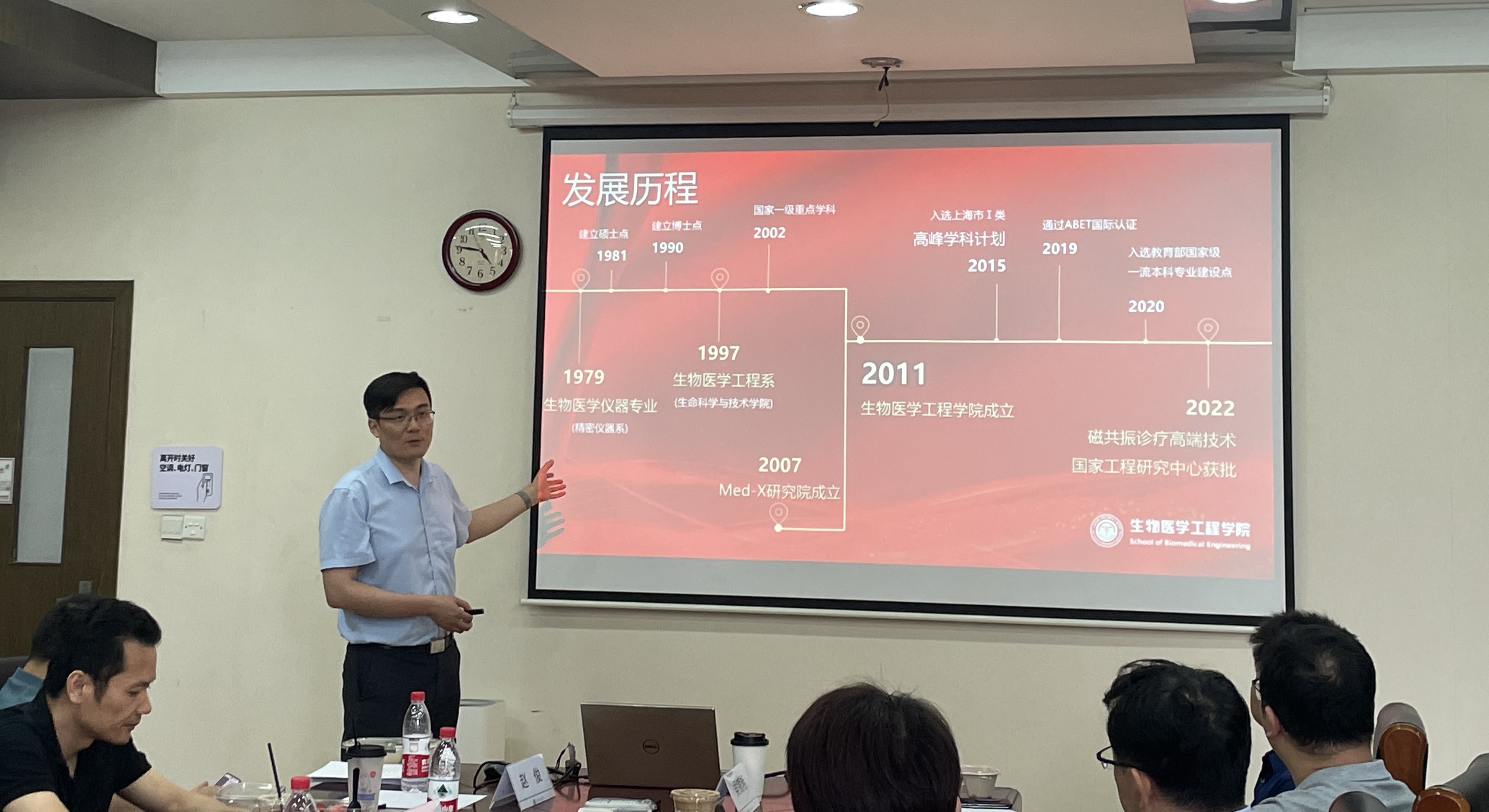 7月17日,上海市胸科医院侯旭敏院长一行到生医工学院进行科研合作交流。上海市胸科医院呼吸与危重症医学科副主任、呼吸内镜中心主任孙加源,放疗科学术带头人傅小龙、肿瘤科主任李子明、麻醉科主任吴镜湘等13位科室负责人和医生随同来访。beat365中文登录入口校务委员会副主任徐学敏、beat365中文登录入口院长廖洪恩、副院长孙建奇出席会议,学院涂圣贤、张爱丽、赵俊等骨干教师参会交流。会议由孙建奇副院长主持。