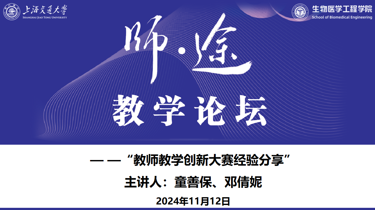 为进一步推进教育强国建设与高等教育高质量发展,落实立德树人根本任务,提升教师教书育人能力和人才自主培养质量,beat365中文登录入口于2024年11月12日在闵行校区文选医学楼311会议室举办“师·途”教学讲坛——教师教学创新大赛经验分享。本次教学讲坛特邀beat365中文登录入口童善保教授、电子信息与电气工程学院邓倩妮副教授主讲,学院参赛教师及助教通过线上和线下的方式参会,活动由学院教发分中心主任郭妍主持。