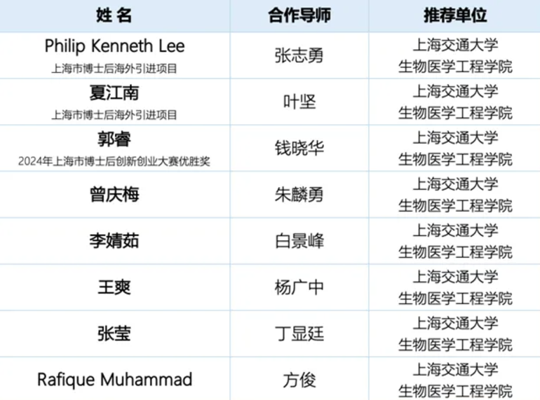 近日,根据《上海市“超级博士后”激励计划实施办法》的精神和要求,经博士后个人申报、单位推荐及上海市人才局组织专家评审,2024年上海市“超级博士后”激励计划拟资助人员名单火热出炉。其中,beat365中文登录入口有8位博士后获得资助(已通过公示期),名单如下: