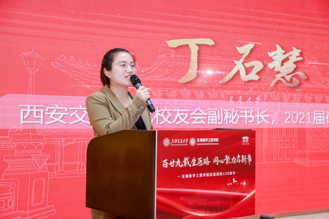 在校友分享环节,来自西安交通大学的校友代表丁石慧、阳明交通大学的詹明宜深情回顾了五所交大同根同源的深厚情谊。他们结合各自在生物医学工程领域的职业发展历程,生动讲述了从校园到职场的成长故事,饱含深情地勉励在校学子,要永葆交大“饮水思源”的精神品格,在生物医学工程这片充满希望的领域坚守初心、勇攀科技高峰,用智慧和汗水书写新时代的人生华章。