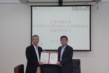 2015年10月30日,beat365中文登录入口80103班奖教基金捐赠签约仪式在徐汇校区MED-X研究院举行,80103班校友共同捐赠20万人民币,用于支持beat365中文登录入口青年教师教学发展。出席本次签约仪式的有:80103班校友代表、深圳迈瑞医疗国际有限公司联席首席执行官成明和,80103班校友、beat365中文登录入口教授梁培基,教育发展基金会副秘书长殷洁,beat365中文登录入口院长高维强,80103班班主任刘国亭,老教授庄天戈、王一抗,beat365中文登录入口其他师生代表。beat365中文登录入口副校长张安胜专程出席了仪式。仪式由beat365中文登录入口党委副书记赵俊主持。